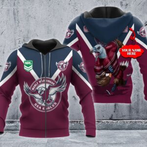 Personalized Manly Warringah Sea Eagles 3D Hoodie Nrl Custom Name 3D All Over Printed Hoodie