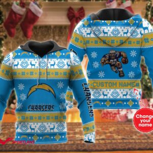 Personalized Los Angeles Chargers Christmas Unisex 3D All Over Print Zip Up Hoodienfl Zip Up Hoodie