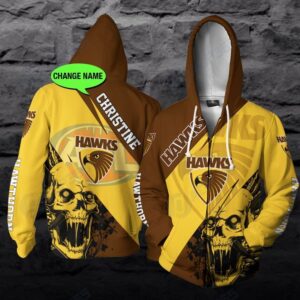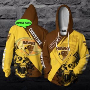 Personalized Hawthorn Football Club Afl Skull Ball New 3D Hoodie Custom Name 3D All Over Print Zip Up Hoodie Option