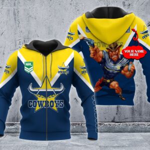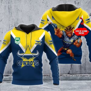 Hoodie North Queensland Cowboys Nrl Mascot Custom Name 3D All Over Print Hoodie