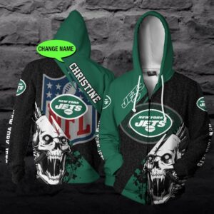 Personalized Dug 3D Hoodie New York Jets Nfl Skull Custom Name 3D All Over Printed Hoodie