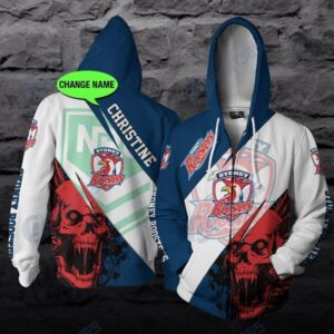 Personalized Dug 3D Hoodie Sydney Roosters Nrl Skull Custom Name 3D All Over Printed Hoodie