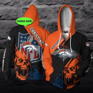 Personalized Denver Broncos Nfl Skull Custom 3D All Over Print Hoodie Gifts For Men Women