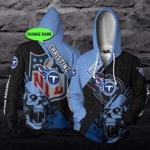 Personalized Dug 3D Hoodie Tennessee Titans Nfl Skull Custom Name 3D All Over Print Zip Up Hoodie Option
