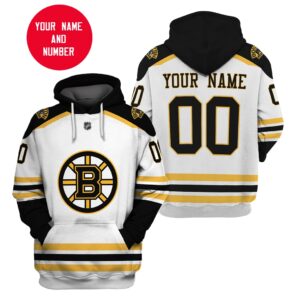 Personalized Custom Name And Number Nhl Boston Bruins White For Fans 3D All Over Print Zip Up Hoodie Option