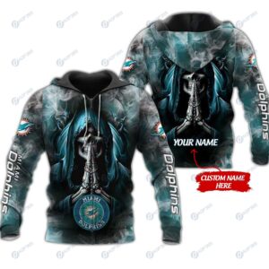 Personalized Custom 3D Hoodie Miami Dolphins Skull Nfl Custom Name 3D All Over Print Hoodie