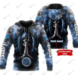 Personalized Custom 3D Hoodie Detroit Lions Skull Nfl Custom Name 3D All Over Print Zip Up Hoodie Option