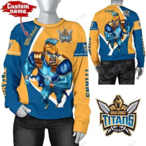 Personalized Custom 3D Hoodie Gold Coast Titans Mascot Nrl Dt Custom Name 3D All Over Print Zip Up Hoodie Option