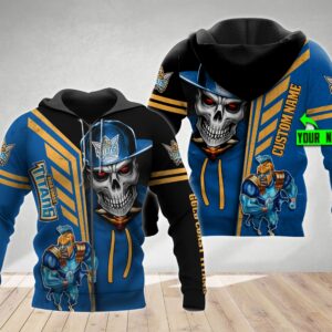 Personalized Custom 3D Hoodie Gold Coast Titans Nrl Skull Cap Custom Name 3D All Over Print Zip Up Hoodie Option