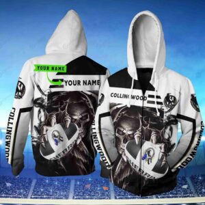 Personalized Collingwood Football Club Afl Skull Ball New 3D Hoodie Custom Name 3D All Over Print Zip Up Hoodie Option