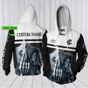 Carlton Football Club Afl Skull Ball New 3D Hoodie Custom Name 3D All Over Print Zip Up Hoodie Option