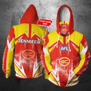 Personalized Afl Gaiter Hoodie Gold Coast Suns Gaiter Hoodie Lightning Custom Name 3D All Over Printed Hoodie
