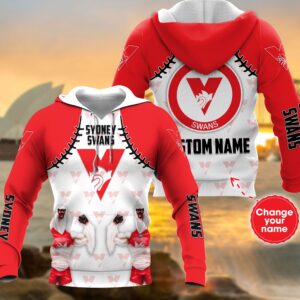 Personalized 3D Hoodie Sydney Swans Afl 3D Lg+Mascot Custom Name 3D All Over Print Zip Up Hoodie Option