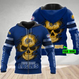 Personalized 3D Hoodie West Coast Eagles Afl Skull Custom Name 3D All Over Print Zip Up Hoodie Option