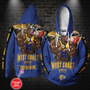 Personalized 3D Hoodie West Coast Eagles Afl Custom Name 3D All Over Printed Hoodie