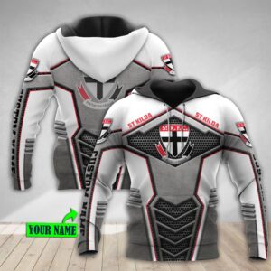 Personalized 3D Hoodie St Kilda Football Club Afl Metal Custom Name 3D All Over Print Zip Up Hoodie Option