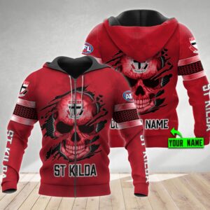 Personalized 3D Hoodie St Kilda Football Club Afl Skull Custom Name 3D All Over Print Zip Up Hoodie Option