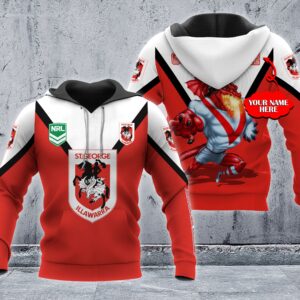 Personalized 3D Hoodie St. George Illawarra Dragons Nrl Custom Name 3D All Over Print Zip Up Hoodie Option