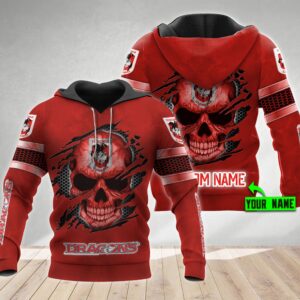 Personalized 3D Hoodie St. George Illawarra Dragons Nrl Skull Cap Custom Name 3D All Over Print Zip Up Hoodie Option