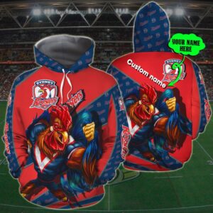 Personalized 3D Hoodie Sydney Roosters Nrl Custom Name 3D All Over Print Zip Up Hoodie Option