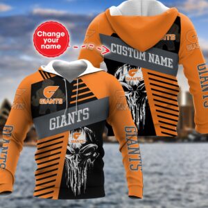 Personalized 3D Hoodie Greater Western Sydney Giants Afl Skull Custom Name 3D All Over Print Zip Up Hoodie Option