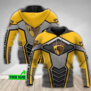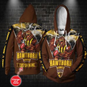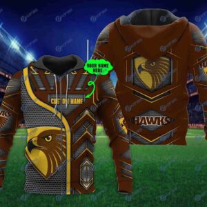 Personalized 3D Hoodie Hawthorn Football Club Afl 3D Metal Custom Name 3D All Over Print Zip Up Hoodie Option