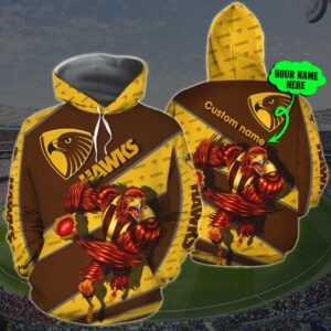 Personalized 3D Hoodie Hawthorn Football Club Afl 3D Hoodie Mascot Custom Name 3D All Over Printed Hoodie