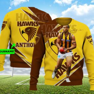Personalized 3D Hoodie Hawthorn Football Club Afl Football Player Custom Name 3D All Over Print Zip Up Hoodie Option