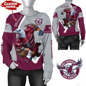 Personalized 3D Hoodie Manly Warringah Sea Eagles Mascot Nrl Dt Custom Name 3D All Over Print Zip Up Hoodie Option