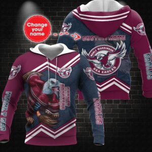 Personalized 3D Hoodie Manly Warringah Sea Eagles Nrl Mascot Tgiac Custom Name 3D All Over Print Zip Up Hoodie Option