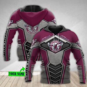 Personalized 3D Hoodie Manly Warringah Sea Eagles Nrl Metal Custom Name 3D All Over Print Zip Up Hoodie Option