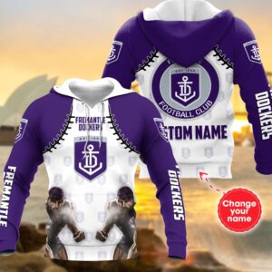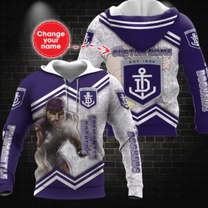 Personalized 3D Hoodie Fremantle Football Club Afl Custom Name 3D All Over Print Zip Up Hoodie Option