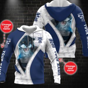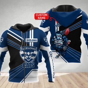Personalized 3D Hoodie Geelong Football Club Vector Mascot Afl Custom Name 3D All Over Print Zip Up Hoodie Option