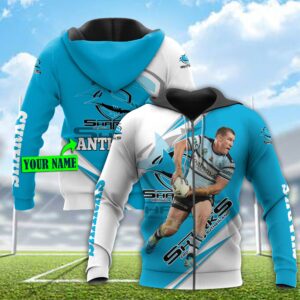 Personalized 3D Hoodie Cronulla Sutherland Sharks Nrl Football Player Custom Name 3D All Over Print Zip Up Hoodie Option