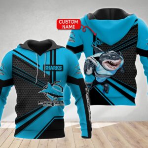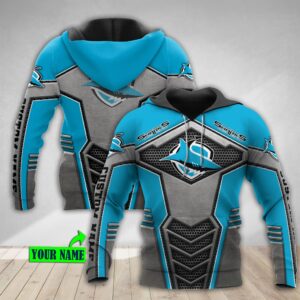 Personalized 3D Hoodie Cronulla Sutherland Sharks Nrl Metal Custom Name 3D All Over Print Zip Up Hoodie Option