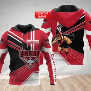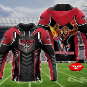 Personalized 3D Hoodie Essendon Football Club Vector Mascot Afl Custom Name 3D All Over Print Zip Up Hoodie Option