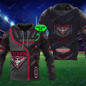 Personalized 3D Hoodie Essendon Football Club Afl 3D Metal Custom Name 3D All Over Print Zip Up Hoodie Option