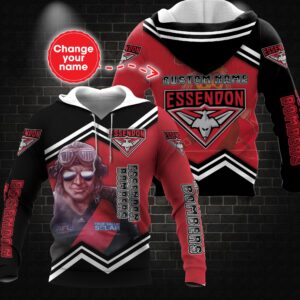 Personalized 3D Hoodie Essendon Football Club Afl Custom Name 3D All Over Print Zip Up Hoodie Option