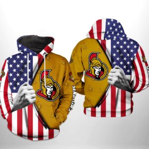 Ottawa Senators Us Flag 3D Hoodie Zip Hoodie, Nhl 3D All Over Print Hoodie Zip Hoodie