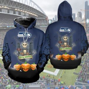 Nfl Seattle Seahawks The Nightmare Before Christmas Jack Skellington 3D All Over Print Zip Up Hoodie Option