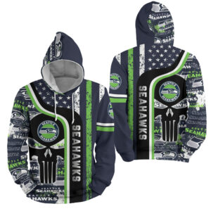 Nfl Seattle Seahawks With Skull Pattern 3D Full Over Print Hoodie Zip Hoodie Sweater Tshirt 3