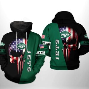 New York Jets Nfl Us Flag Skull Team 3D All Over Print Zip Up Hoodie Option