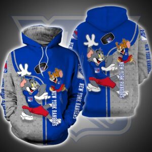 New York Rangers Ft. Tom And Jerry 3D Hoodie Zip Hoodie, Nhl 3D All Over Print Hoodie Zip Hoodie