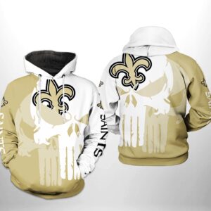 New Orleans Saints Nfl Skull Punisher Team 3D All Over Print Zip Up Hoodie Option