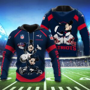 New England Patriots Custom Name Mickey 3D Hoodie Zip Hoodie, Nfl 3D All Over Print Hoodie Zip Hoodie