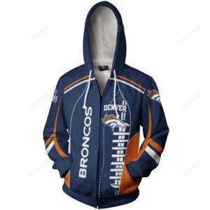 Personalized All Over Print Denver Broncos Zip Up Hoodie Show Your Love For Your Favorite Team