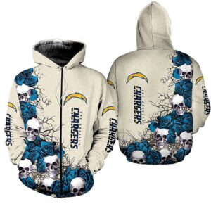 Los Angeles Chargers Halloween Pumpkin Skull Print 3D Hoodie Zip Hoodie, Nfl 3D All Over Print Hoodie Zip Hoodie