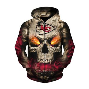 Kansas City Chiefs Nfl Team Skull 3D All Over Print Zip Up Hoodie Option