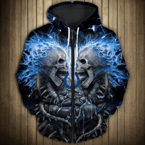 Blue And White Indianapolis Colts Skull 3D All Over Print Hoodie With Zipper