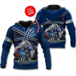 Indianapolis Colts Mascot Design Custom Name 3D Hoodie Zip Hoodie, Nfl 3D All Over Print Hoodie Zip Hoodie